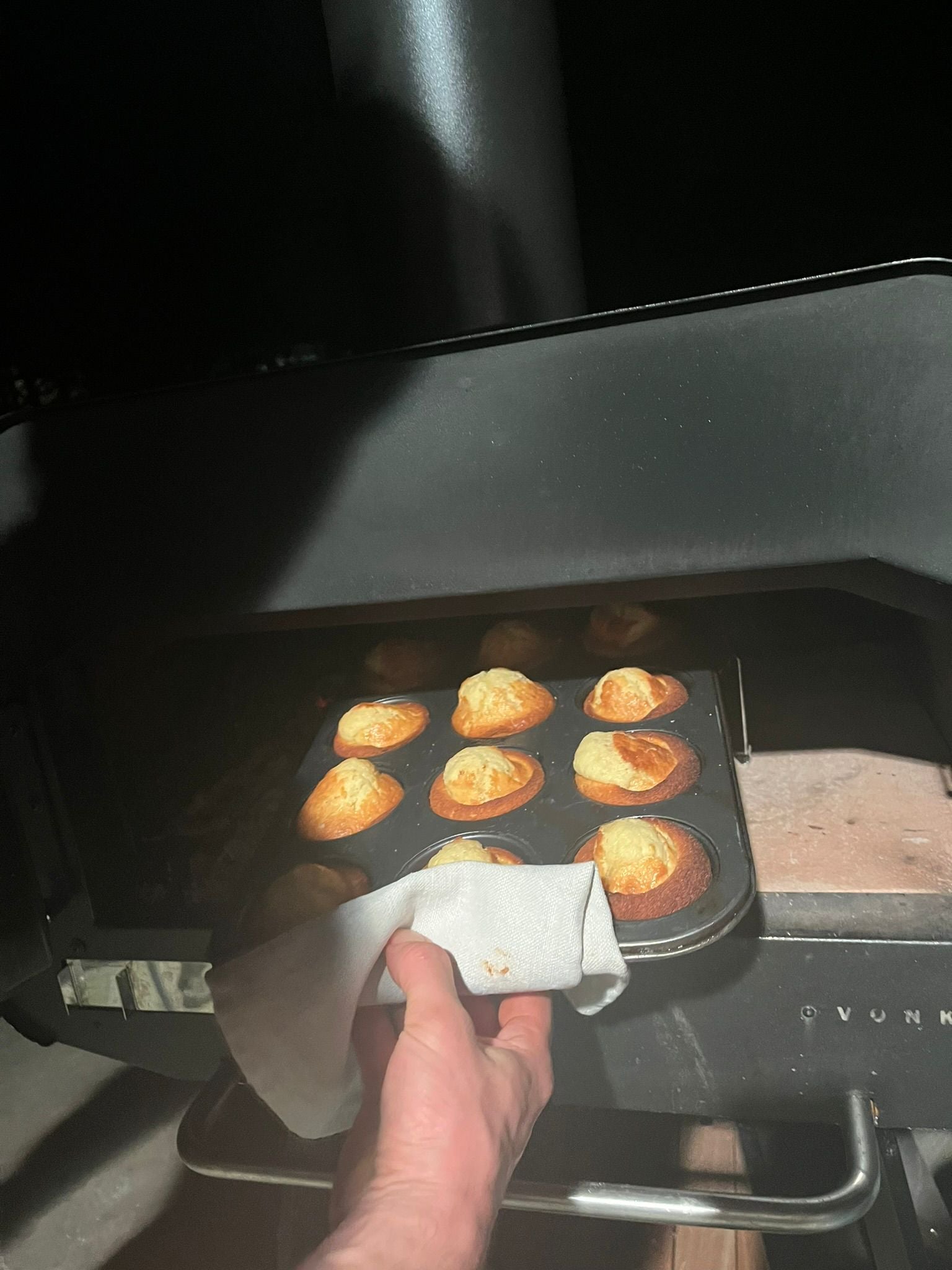 8. Bak in jouw Vonken, en zorg dat er geen vlam meer aanwezig is en de kolen zo goed als opgebrand of uitgehaald zijn. Je kan deze cake bakken rond de 175°C. Geen zorgen als jouw Vonken iets warmer of kouder is, dan zal het enkel wat korter of langer duren, reken tussen de 8 en 18 minuten.