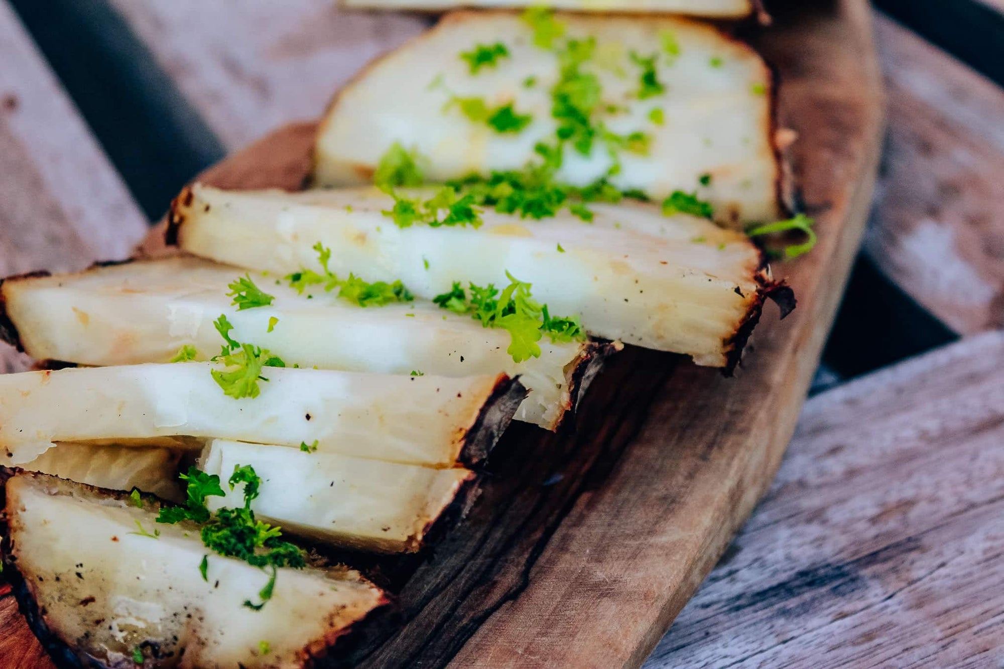 You can hardly go wrong with this! Feel free to put a pumpkin or celeriac whole in your Vonken, even if you've only just started making fire. Place them next to the flames or coals (but not in the flames). They can easily cook for an hour or more on the baking floor, and invariably have a buttery tender inside (and you don't have to worry about the blackened outer shell, you can just cut it away).