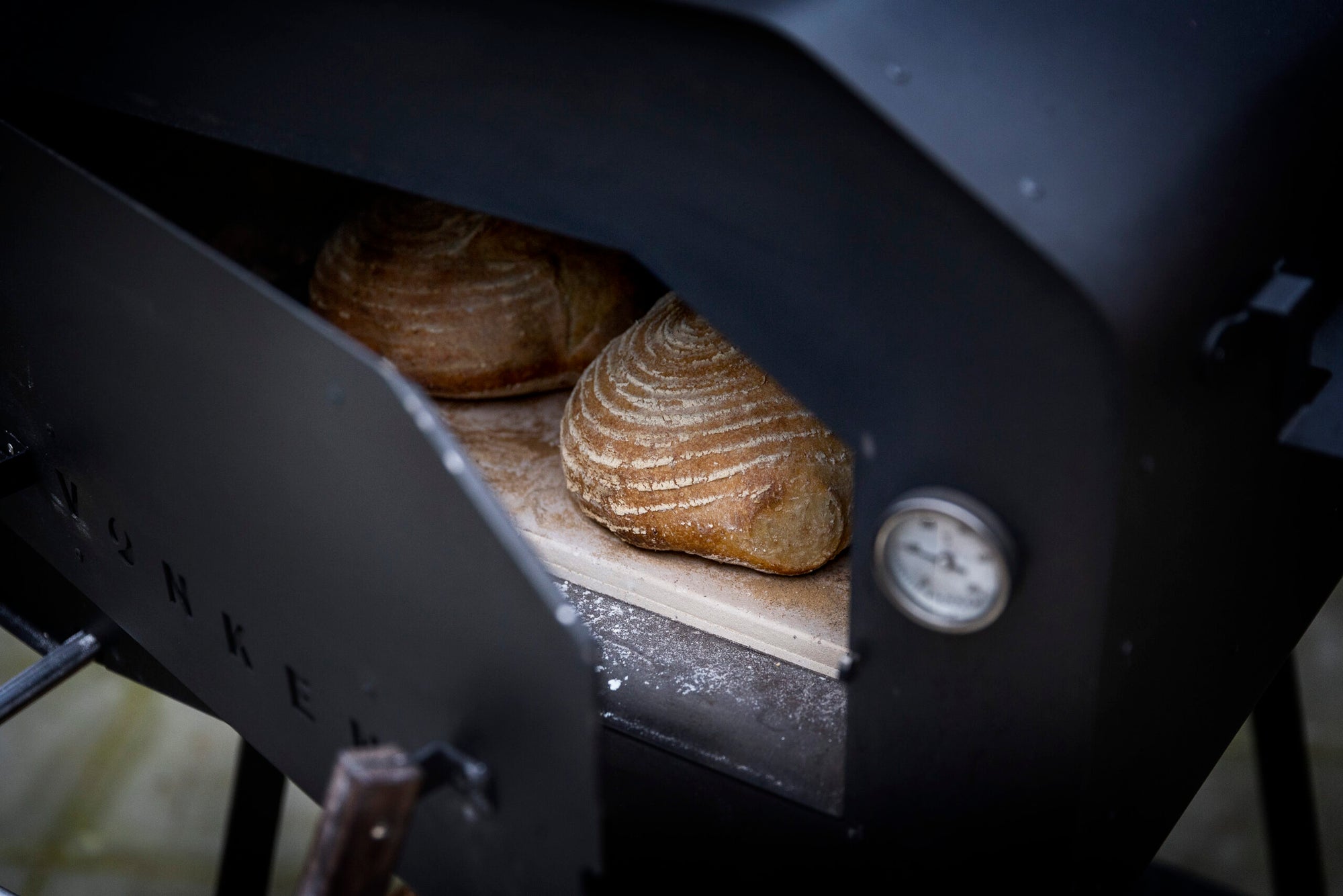 It is best to light your Vonken well in advance (at least 2.5 hours in advance) so that the Vonken is thoroughly warm and has been able to store all the heat in the stones and the vault. These will be needed later to release when the bread bakes. When the flame is out, and you only have glowing coals left, it is best to remove it with the pizza shovel, so that you can start making bread carefree. In that case, make sure that the temperature of the baking floor is not too high (an infrared thermometer is useful for this). Prefer to leave the coals in? Then wait a little longer until it has almost all turned into ashes, otherwise the bread would burn because of the glowing coals. An extensive bread recipe from one of our bakers or founders can be found here and here .